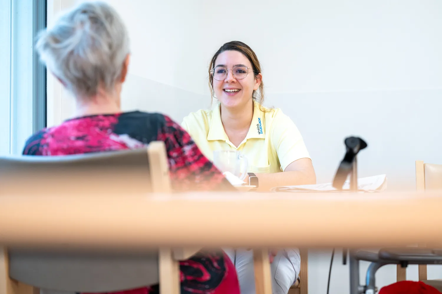 Im Alterszentrum erlebte ich viele herausfordernde Situationen. Doch je mehr ich gefordert oder sogar überfordert wurde, desto mehr wollte ich dranbleiben. Diese Erfahrungen motivierten mich, mich weiterzubilden. Sich Wissen aneignen, fand ich schon während meiner Schulzeit wichtig. So entschied ich mich nach dem Abschluss des Praktikums für die Lehre als Fachfrau Gesundheit, die ich in der Spitex, die zum Alterszentrum gehört, antreten konnte.