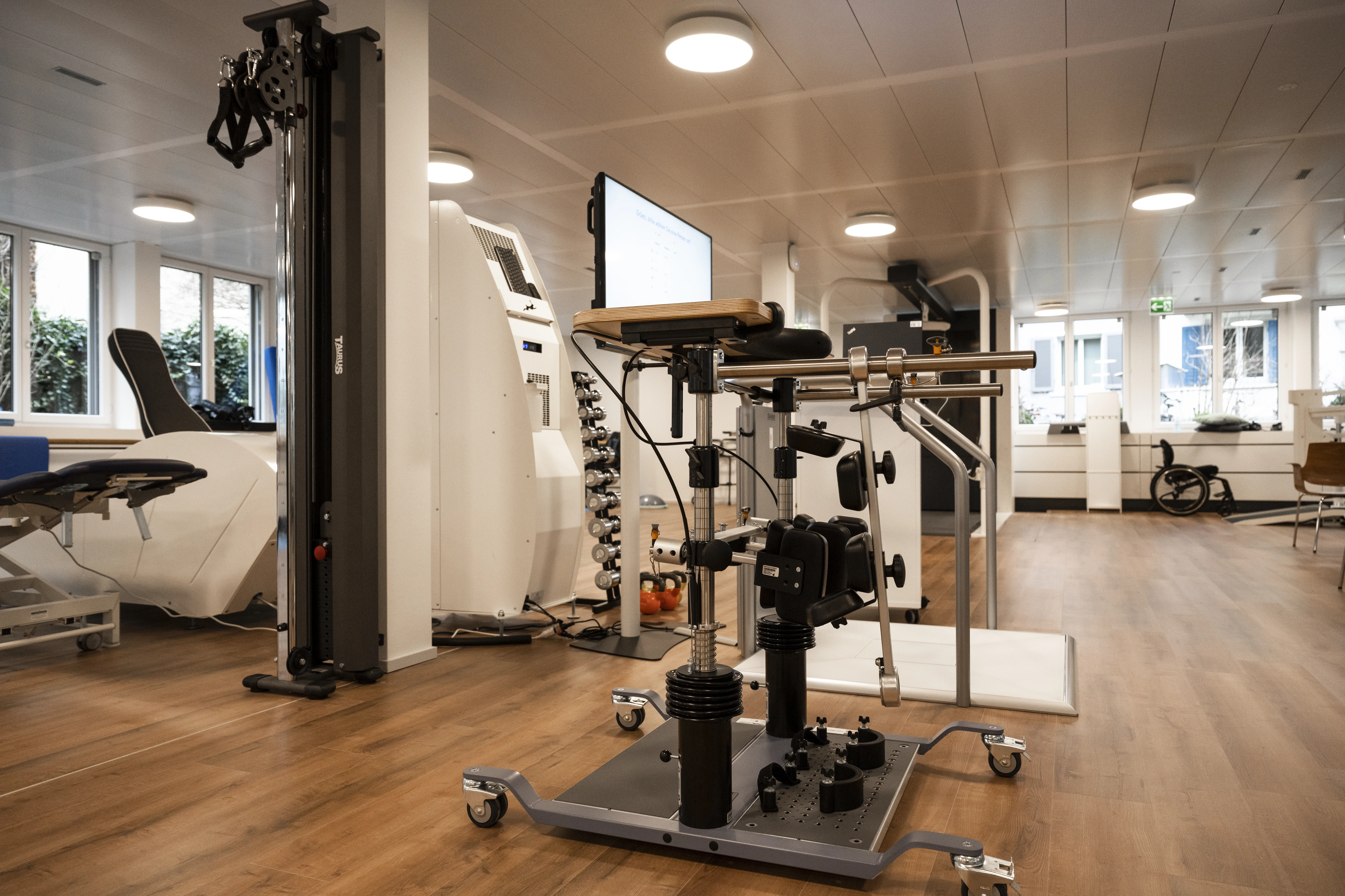 Einen grösseren Bereich des Platzes nimmt die Bein-Welt ein. «Wir haben die Erfahrung gemacht, dass ein hoher Anteil an Patienten den Schwerpunkt auf die unteren Extremitäten legen möchte, da die Mobilität wichtiger als die Armfunktion eingestuft wurde», sagt Dino De Bon.